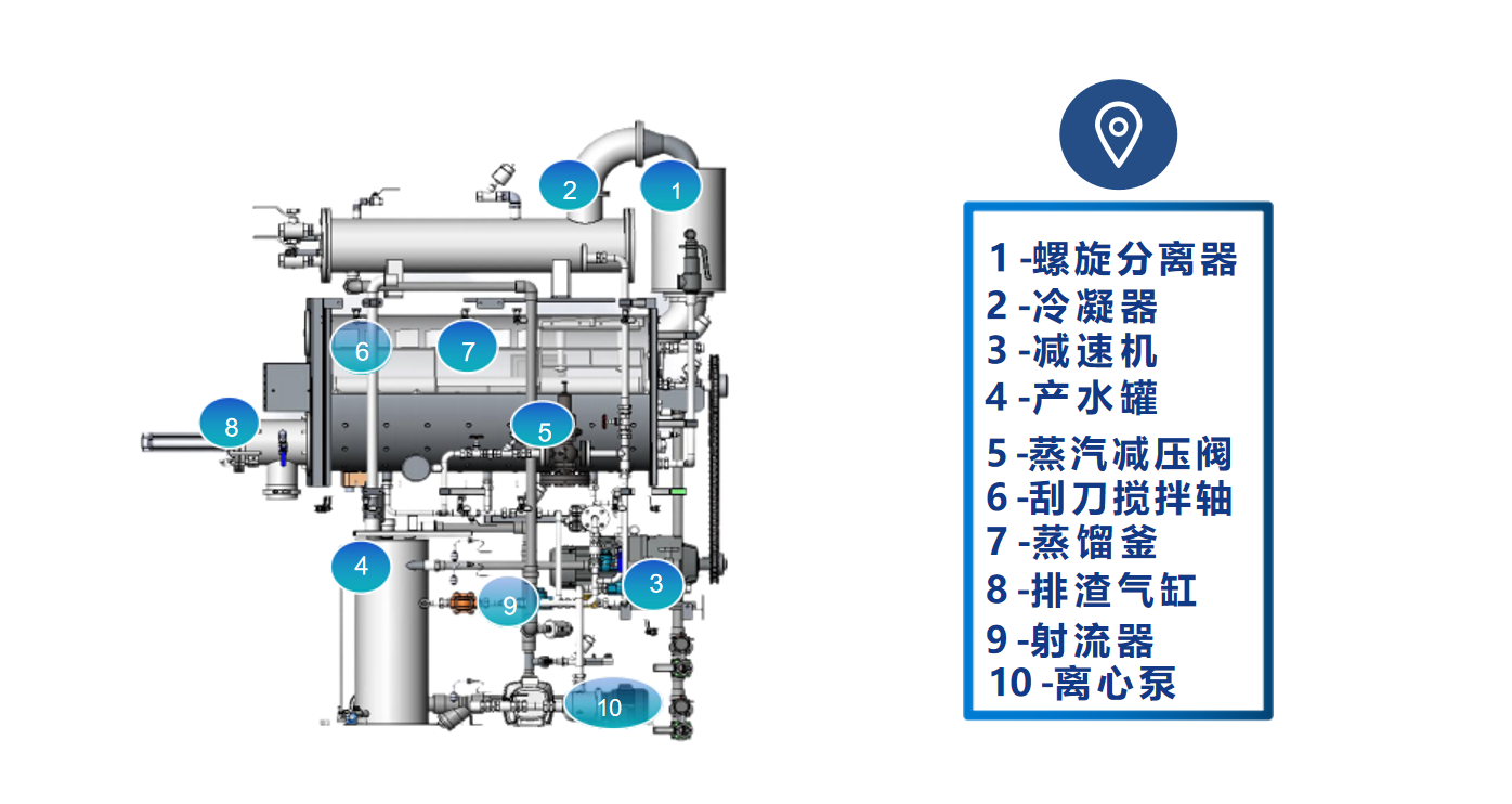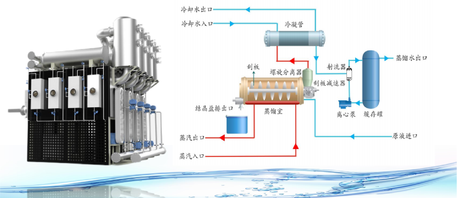 ●蒸汽結(jié)晶系列是一種利用蒸汽技術(shù)的低溫蒸發(fā)器